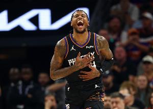 格林:“我認為是的。我們今晚就會知道。從去年的經歷到今年,你學到了很多,特別是在新的環境中,身邊有布克這樣的人。我覺得這會很好?!?/p>