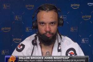 賽后,狄龍接受采訪時談到了對陣雷霆的心態。他說道:“相信我們每天都在做的事,努力打球,珍惜每一個回合,對陣NBA里的任何人,我都相信我的隊友。我們會上場‘偷走’G1的勝利。(We're going to go out there and steal Game 1.)”