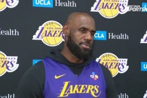體育資訊4月17日訊 今日,湖人球星詹姆斯在訓練后接受了采訪。
