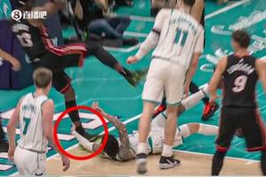 啊這……黃蜂本季常規賽客戰熱火 三球倒地后也抓過阿德巴約小腿