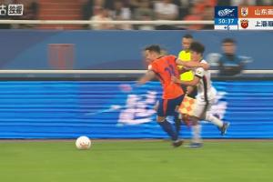體育資訊04月17日訊 泰山vs海港上半場補時階段,楊希人球分過被阿爾瓦羅拉倒,裁判向阿爾瓦羅出示黃牌。