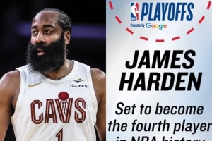 體育資訊4月17日訊 季后賽即將開打,NBA官方分享了一個哈登的季后賽紀錄。
